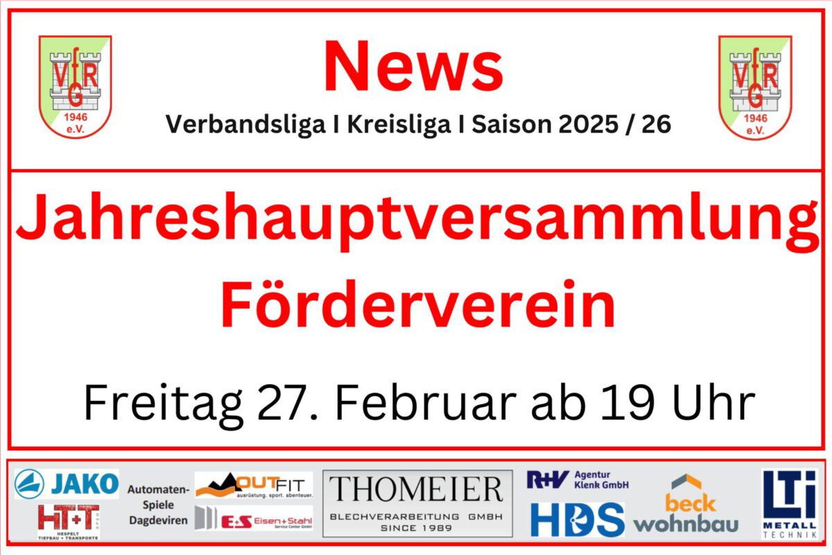 Am Freitag den 27. Februar findet ebenfalls die Jahreshauptversammlung des Fördervereins des VfR Gommersdorf statt. Diese findet um 19 Uhr im Sportheim des VfR Gommersdorf statt.