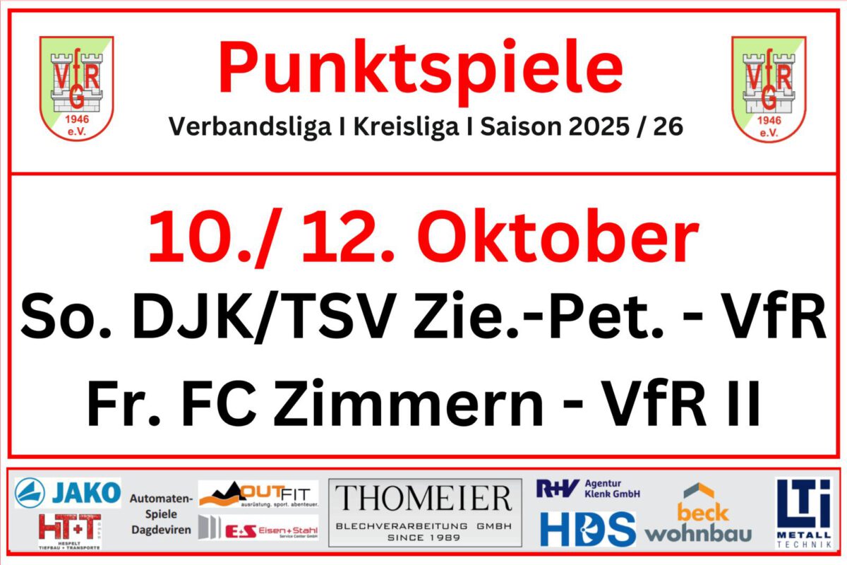 Freitag 10.10.2025, 19:00 Uhr: FC Zimmern – VfR Gommersdorf II