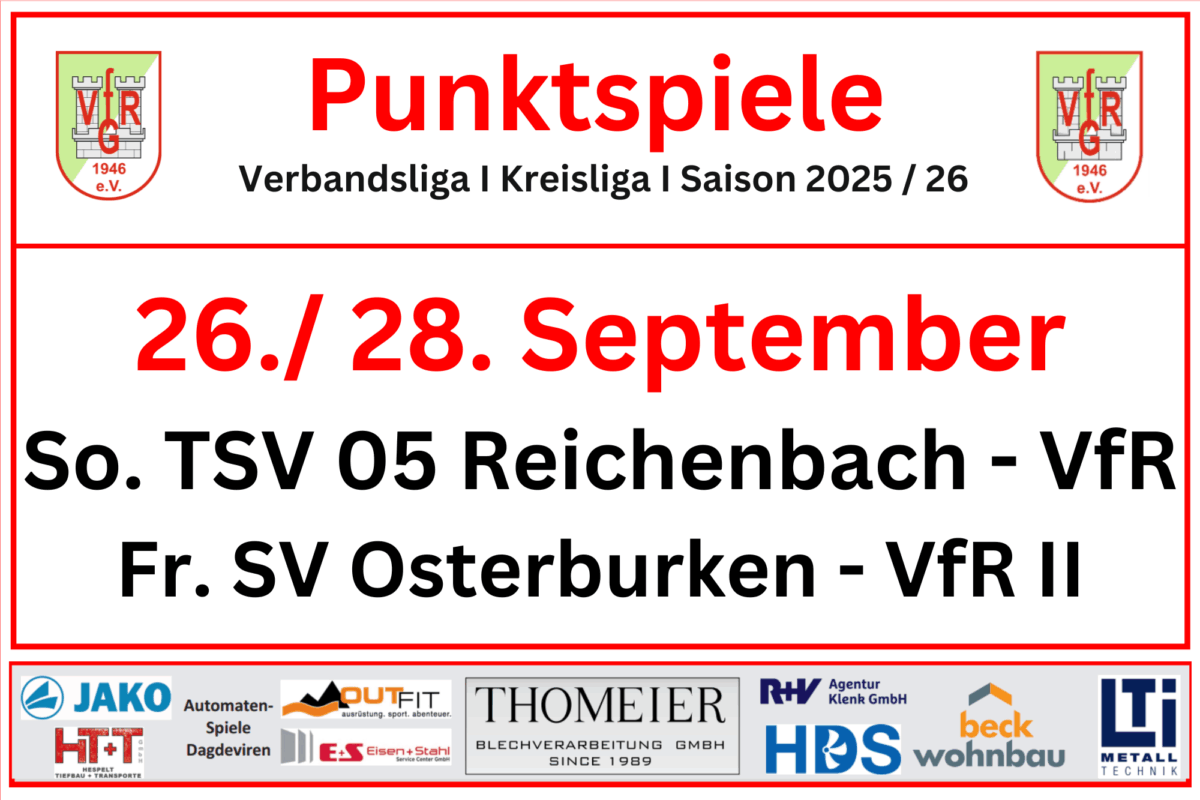 Sonntag 28.09.2025, 15:30 Uhr: TSV 05 Reichenbach – VfR Gommersdorf