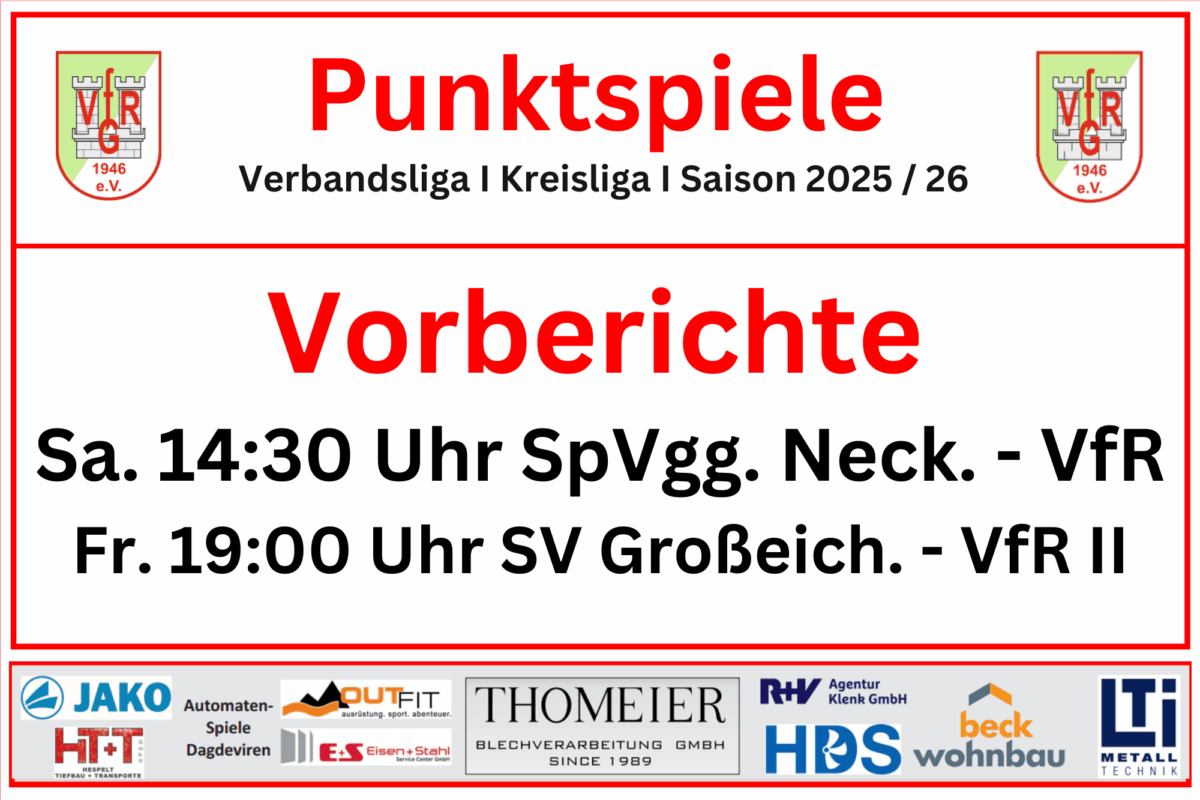 Am 13. Spieltag der Saison 2025/2026 in der bfv-Verbandsliga Baden tritt der VfR Gommersdorf bei der SpVgg. Neckarelz an. Die Jagsttäler kommen nach einem schweren Start in die Spielzeit mit Rückenwind zur Spielvereinigung. Nach acht Niederlagen zum Start konnte man die vergangenen vier Spiele für sich entscheiden und sich wieder Luft im Kampf um den Klassenerhalt verschaffen. Infolgedessen konnte man auf den ersten Nichtabstiegsplatz springen. Der kommende Gegner aus Neckarelz steht derzeit auf dem letzten Platz der Liga. Das Team wird den Gegner dennoch nicht unterschätzen, hat man doch im Verbandspokal bereits eine Niederlage gegen sie einstecken müssen. Darüber hinaus zeigt der Tabellenplatz nicht wirklich die aktuelle Form des Heimteams. Die letzten vier Begegnungen hat man allesamt nicht verloren und konnte sechs Punkte holen. Ähnliche Voraussetzungen also bei beiden Teams. Die Gästemannschaft von Trainer Manuel Hofmann wird alles daran setzen Revanche für die herbe Niederlage im Pokal zu nehmen. Dort musste man sich in der dritten Runde mit 2:0 geschlagen geben. Damals konnte Sven Berberich beide Treffer erzielen. Diesen wird die Hintermannschaft des VfR beim kommenden Spiel besonders im Auge behalten. Auch auf den Top-Torschützen des Heimteams, Lucas Baur, sollte die Abwehr ein Auge behalten. Defensiv waren die Jagsttäler in der nahen Vergangenheit wieder gut. Selbst bei wechselndem Personal, wie beispielsweise gegen den Tabellendritten Eppingen am vergangenen Sonntag, konnte man die Defensive wieder stabilisieren. Die Personalsituation wurde nicht zuletzt durch die Verletzung von Ruben Schmitt noch einmal verschärft. Im letzten Spiel wurde die gesamte Viererkette neuformiert und schlug sich sehr gut. Ein Zeichen dafür, dass der Zusammenhalt im Team stimmt und man auch auf ungewohnten Positionen alles gibt. Ohnehin eine der Stärken des Teams, auch aus der Saison 2025/2026. Es bleibt abzuwarten welches der beiden Teams seinen Lauf fortsetzen wird, Kann sich der VfR weiter absetzen oder kann sich die Spielvereinigung wieder ein bisschen Luft verschaffen? Die Antwort gibt es am Samstagnachmittag in Neckarelz. Der VfR hofft auf zahlreiche Anhänger, welche die Mannschaft bei ihrer Mission unterstützen.